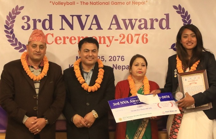 भलिबलका उदियमान खेलाडीहरुमा महिलातर्फ उषा भण्डारी (पुलिस क्लब) र सरण सामरी क्षेत्री (टिएसी) घोषित भएका छन् । त्यसैगरी, महिलातर्फ एपीएफका ज्ञानेन्द्र बिष्ट र पुरुषतर्फ पुलिसका सरोज श्रेष्ठ उत्कृष्ट प्रशिक्षक घोषित भए । उत्कृष्ट खेलाडी तथा प्रशिक्षकहरुले नगद २५ हजारसहित सम्मान पत्र प्राप्त गरे । यसैगरी, भलिबल खेलमा लामो समयसम्म आवद्ध रहि भलिबल अन्तर्राष्ट्रिय खेलाडी जीवनबाट सन्यास लिएकी कोपिला उप्रेतीलाई संघले सम्मान स्वरुप नगद ५० हजारसहित सम्मानपत्रले सम्मान गर्यो । उप्रेतीले ६१ सालदेखि अनवरत रुपमा भलिबल खेलको खेलाडीको रुपमा आफुलाई उभ्याएकी थिईन् । सम्मान गर्ने क्रममा नेपालमा भलिबल खेलको बिकास र विस्तारमा अनवरत लागिपर्ने न्यू डायमण्ड एकेडेमीका संस्थापक एवं प्रशिक्षक तथा नेपाल भलिबल संघ विद्यालय कमिसनका उपाध्यक्ष कुमार राई पनि रहेका छन् । राईलाई नगद २५ हजारसहित अभिनन्दन पत्रले सम्मान गरिएको हो ।