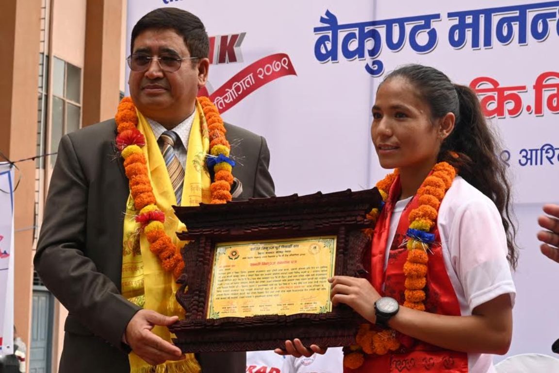विजेतालाई नेपाल ओलम्पिक कमिटीका अध्यक्ष समेत रहेका संस्कृति पर्यटन तथा नागरिक उड्डयन मन्त्री जीवनराम श्रेष्ठ, आयोजक संघका अध्यक्ष विवेन्द्रभक्त प्रधानाङ, महासचिव नरेशकुमार मल्ल, कीर्तिमानी पूर्व धावक बैकुण्ठ मानन्धर, पूर्व धावक बुद्धवीर लामालगायतले एक कार्यक्रमबीच पुरस्कृत गरे ।