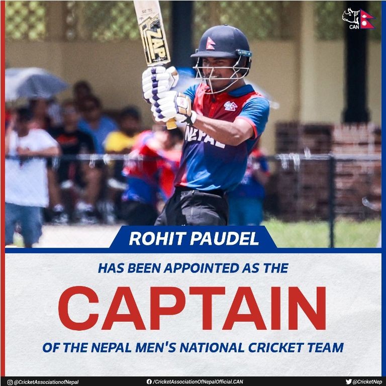 क्रिकेट संघले शुक्रबार रोहितलाई कप्तानको जिम्मेवारी दिएको छ । सन्दीप लामिछाने निलम्बनमा परेपछि राष्ट्रिय टिमको कप्तान पद रिक्त थियो । २० वर्षीय रोहितले केन्या टुरमा ५० ओभरको खेलमा नेपालको कप्तानी गरिसकेका छन् । रोहितले नेपालको यू-१९ उमेर समूहको कप्तानी गरेका थिए ।
