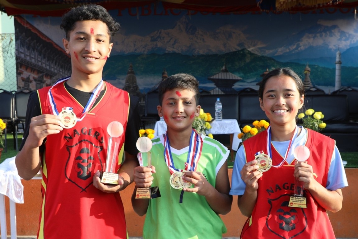 काठमाडौं । निम्स र युनिक नेपाल एकेडेमी, भक्तपुरले आठौं रेडिअन्ट कप अन्तरविद्यालय बास्केटबल प्रतियोगिताको उपाधि मंगलबार जितेका छन् । निम्सले सिनियर ब्वाइज र सिनियर गर्ल्स दुवैको उपाधि रक्षा गर्यो । युनिक जुनियर ब्वाइजमा च्याम्पियन बन्यो ।