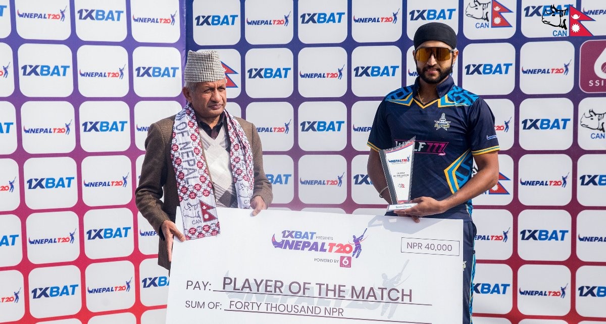 यस्तै, ओपनर लहिरु मिलन्थाले २५, साड्ले भान स्कल्कोवकले अविजित २१, कुशल भुर्तेलले १९, अनिल साहले १३ र हर्मित सिंहसले १२ रन बनाएका थिए । काठमाडौंका लागि अज्मतुल्लाह ओमरजाईले दुई विकेट लिँदा अभिनाश बोहरा, अनिल खरेल, बसिर अहमेद, सुनम गौतम र एलेक्स ब्लाकले समान एक/एक विकेट लिए ।