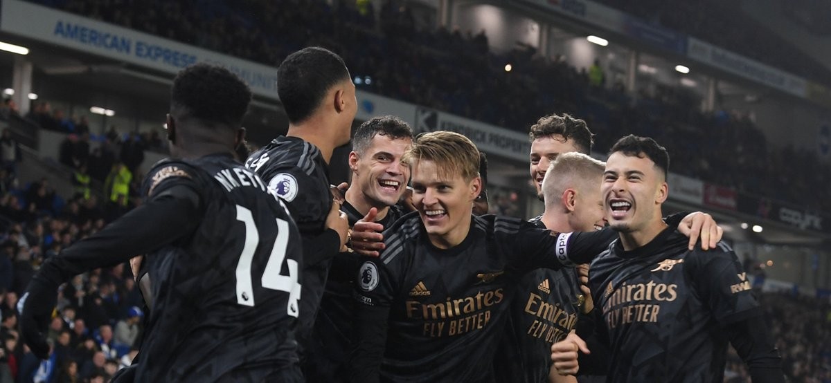 आर्सनलको लागि बुकायो साका, मार्टिन ओडेगागार्ड, एडवार्ड एनकेटीह र ग्गाब्रियल मार्टिनेलीले एक/एक गोल गरे । ब्राइटनका काओरो मितुमा र इभाँ फेर्गुसनले एक/एक गोल फर्काए ।